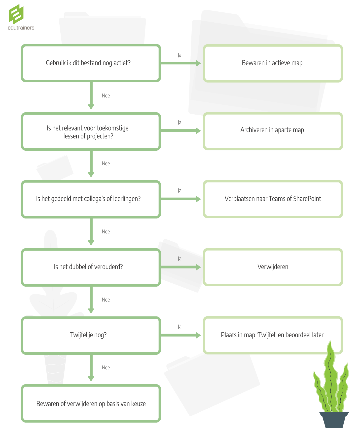 - kun je bestanden en mappen effectief verwijderen, archiveren of herstructureren;